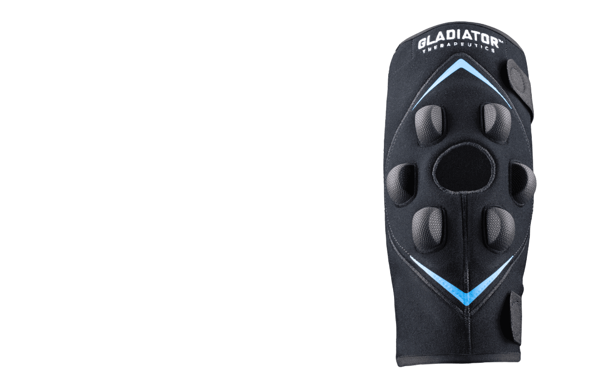 Gladiator MD™ Knee Device ger lindring av inflammation och smärta vid mjukdelsskador samt före eller efter operation.